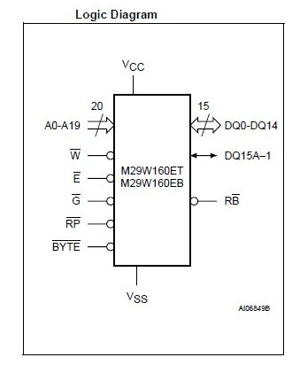M29W160EB70N6E features:(1)supply voltage: Vcc = 2.7 V to 3.6 V for program, erase and read;(2)access times: 70, 90 ns;(3)programming time – 10μs per byte / word typical;(4)35 memory blocks: 1 boot block (top or bottom location) and 2 parameter and 32 main blocks;(5)program / erase controller - embedded byte / word program algorithms;(6)erase suspend and resume modes - read and program another block during erase suspend;(7)unlock bypass program command - faster production / batch programming;(8)temporary block unprotection mode;(9)low power consumption - standby and automatic standby;(10)100,000 program / erase cycles per block.